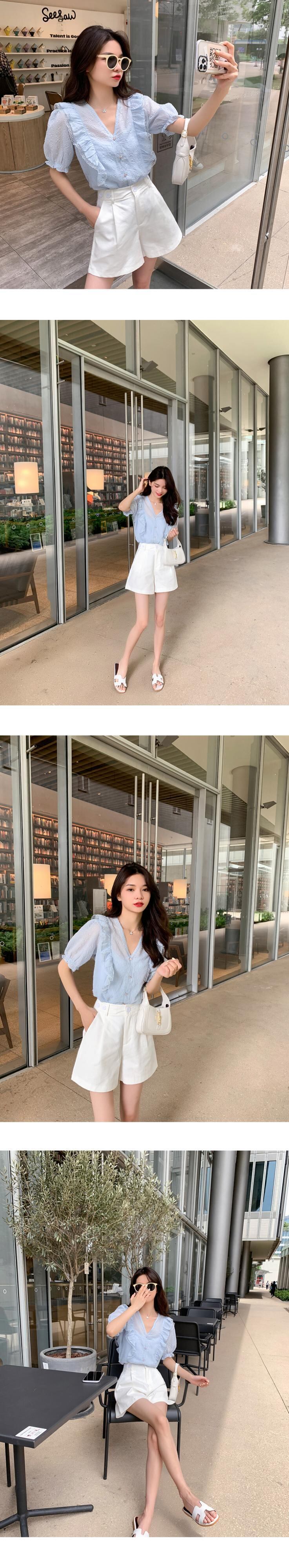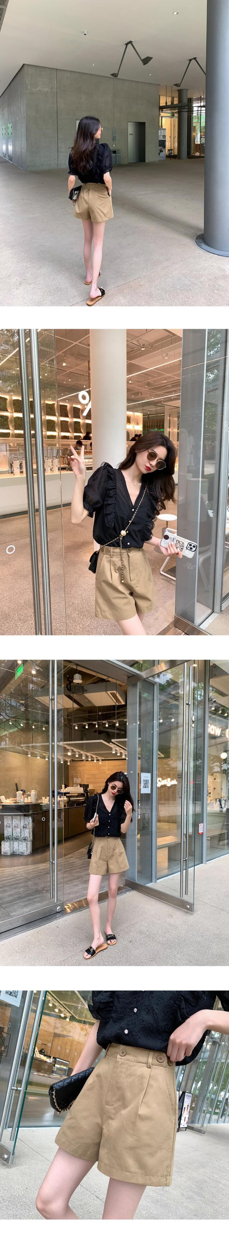 シングルボタンハイウェストウェストカジュアルパンツ ショーツ ブルマー 6Du_Shop_Women6681575231