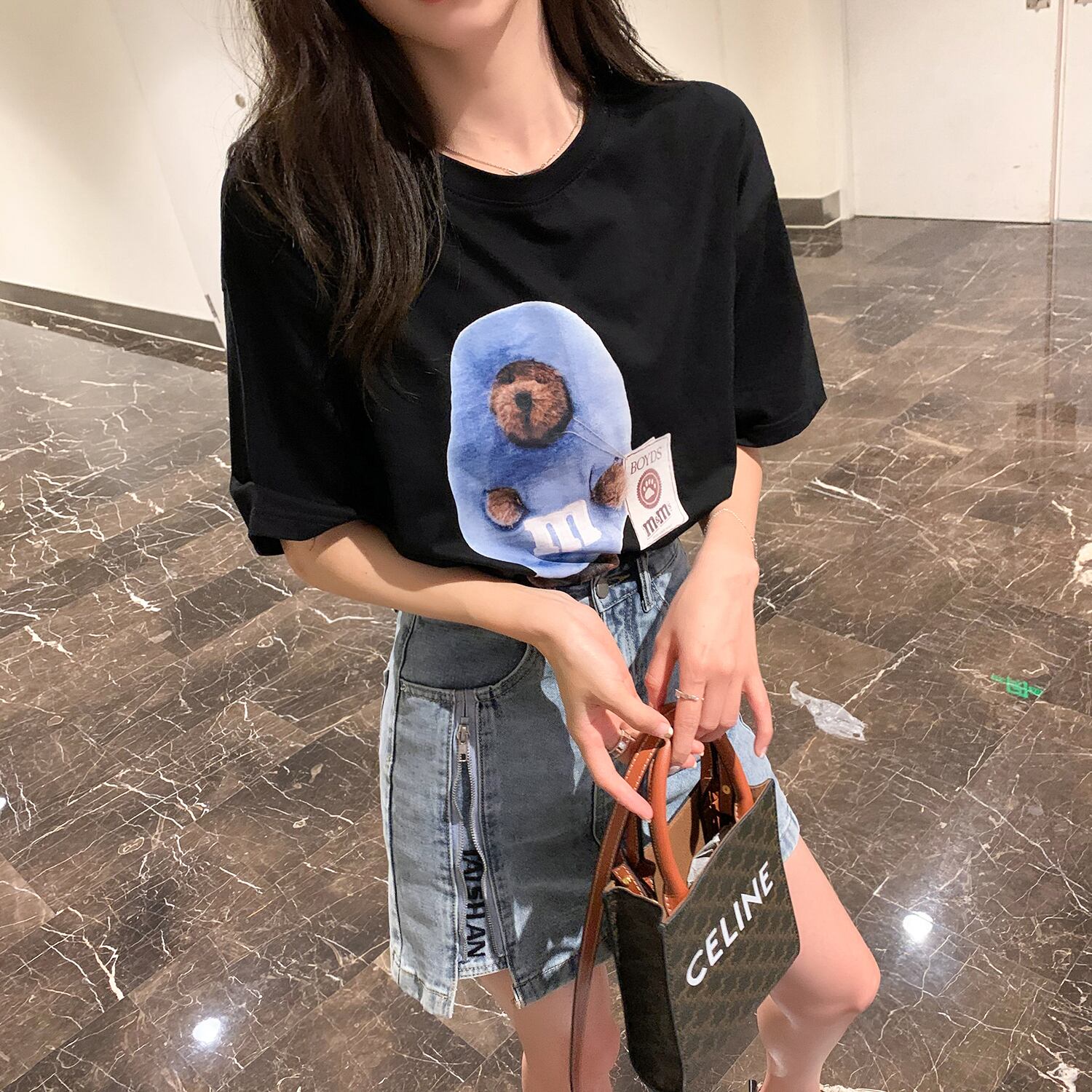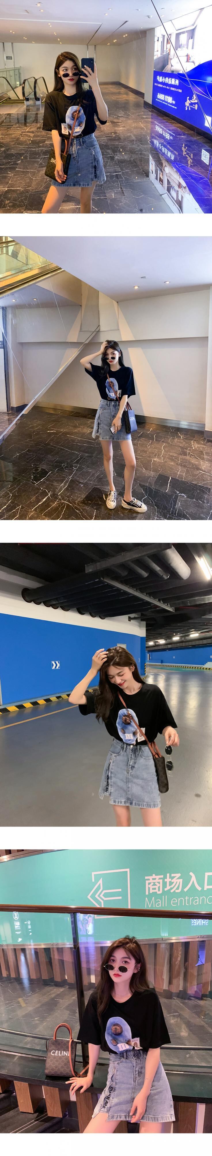 ブラックスタンダードスタイルプリントTシャツ サマートップス レトロ 夏物 6Du_Shop_Women80909102653