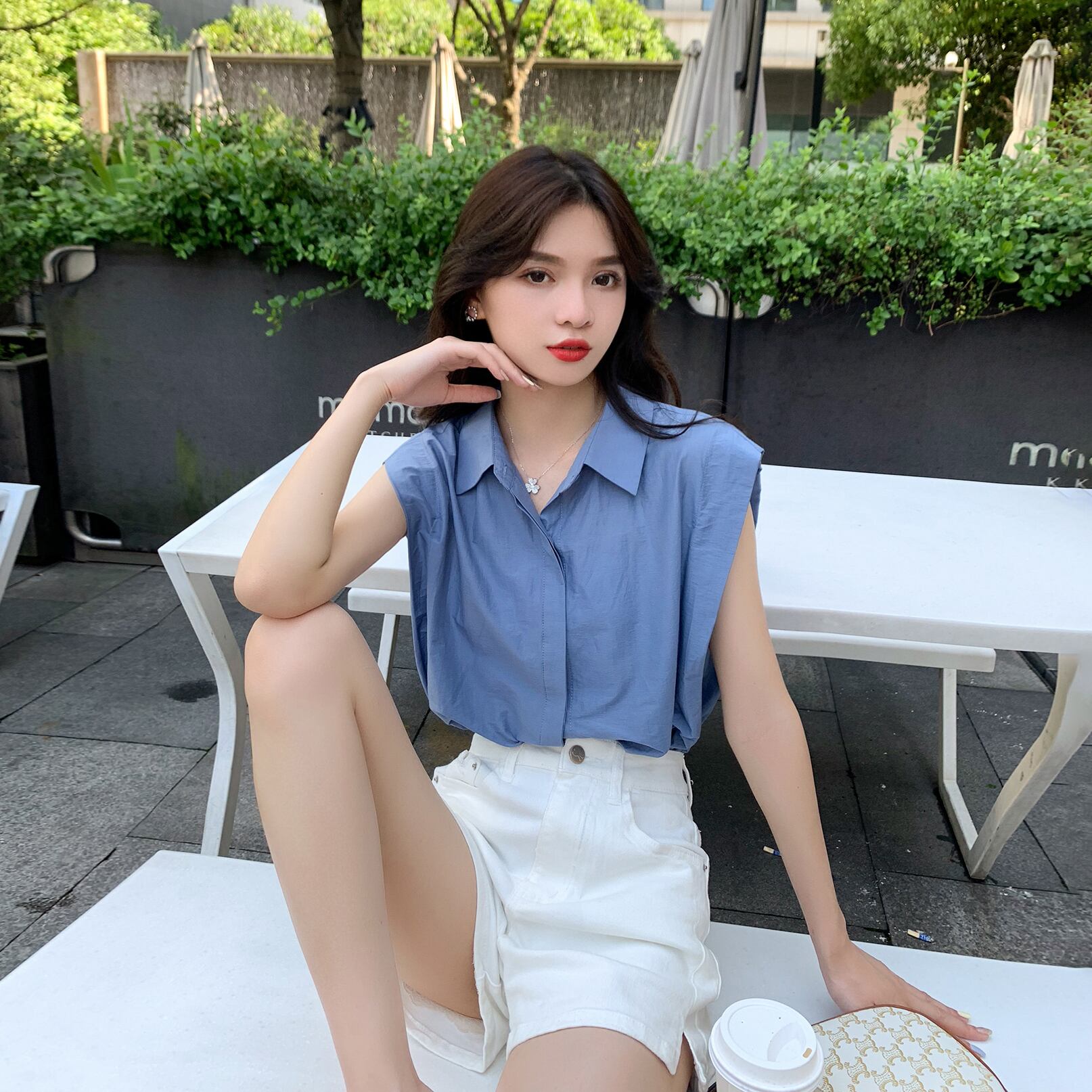 サマースタイルホワイトノースリーブシャツ 薄手カジュアルレッドトップス 夏物 6Du_Shop_Women64386168390