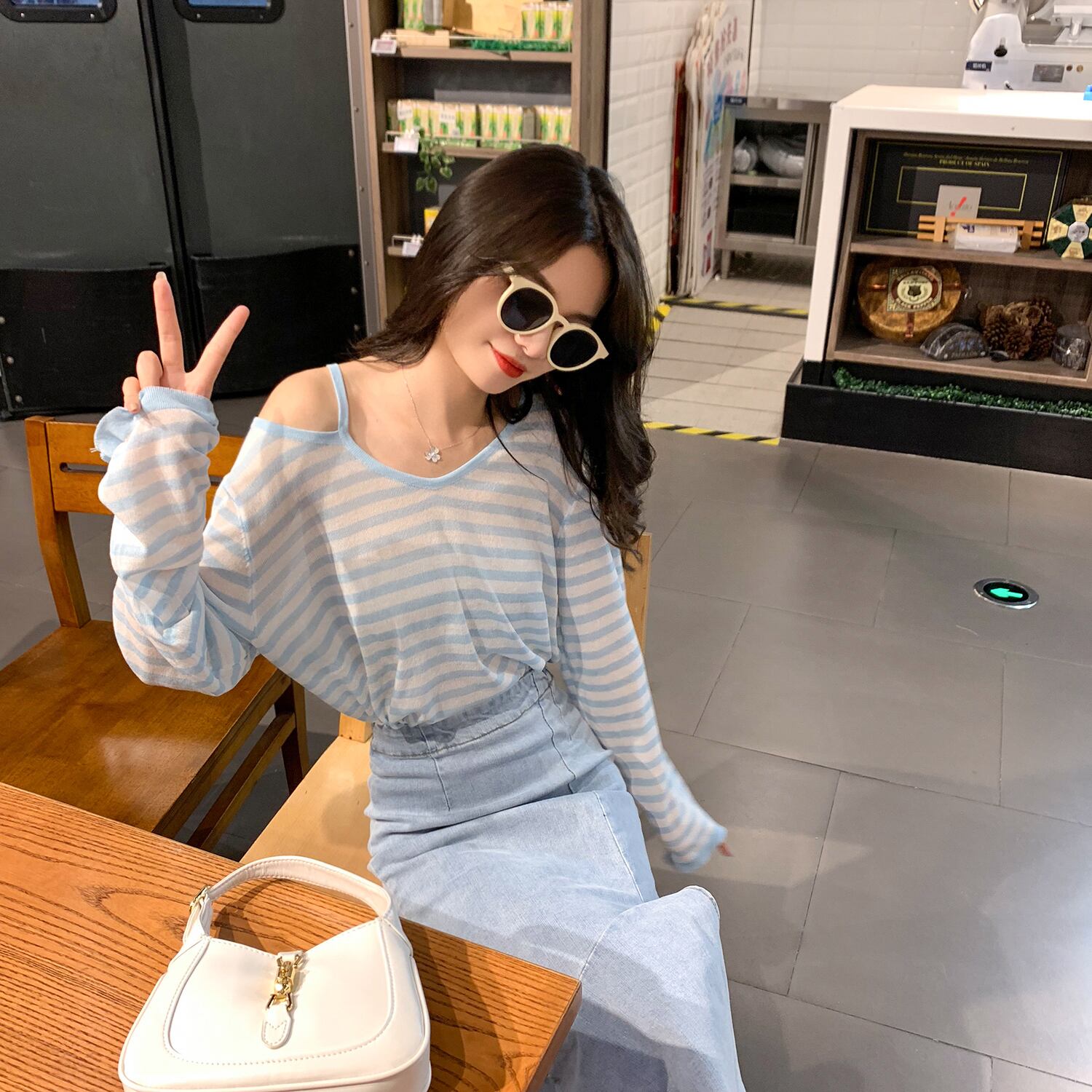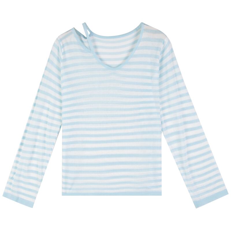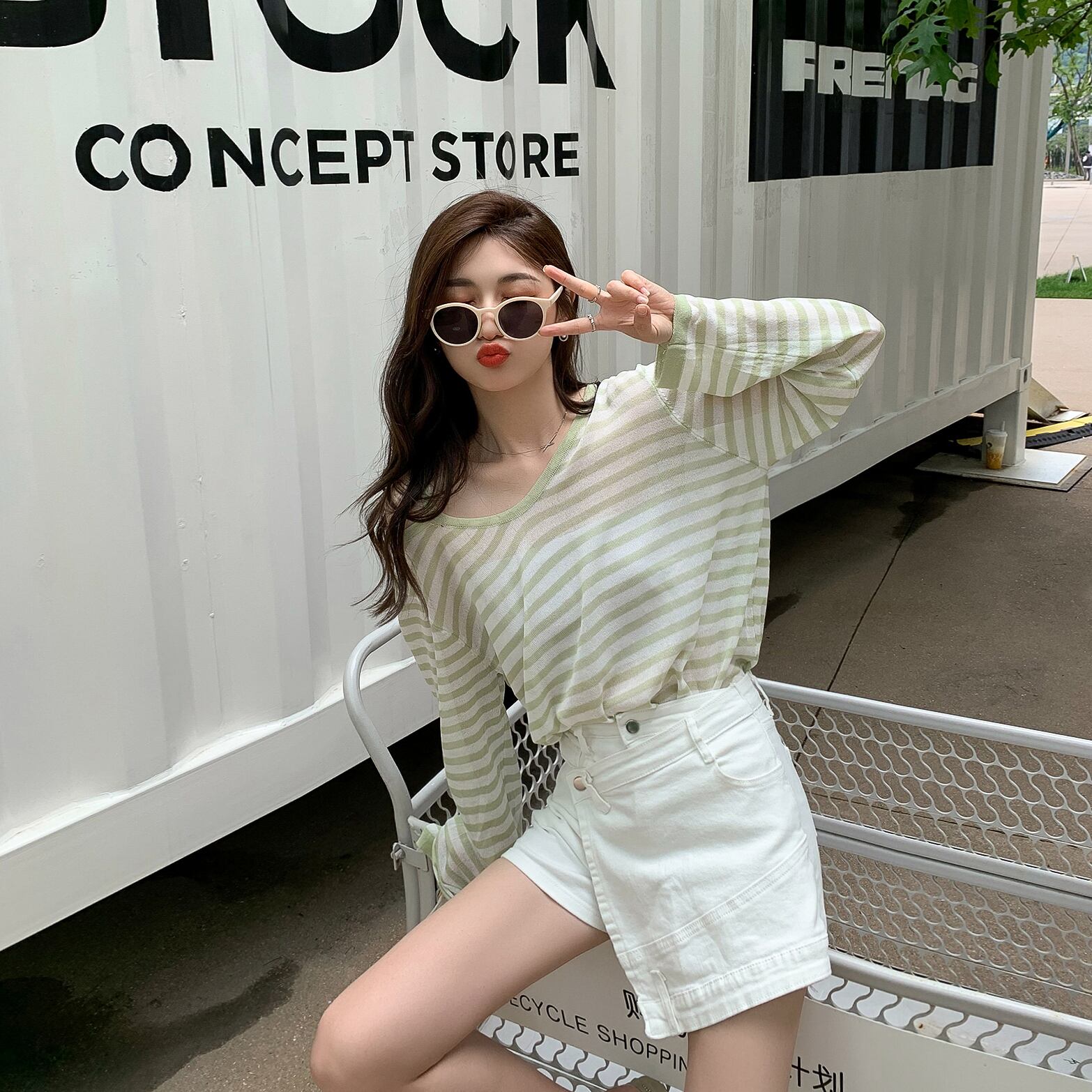 サマー薄手カラーストライプセーター 夏物 6Du_Shop_Women22214230459