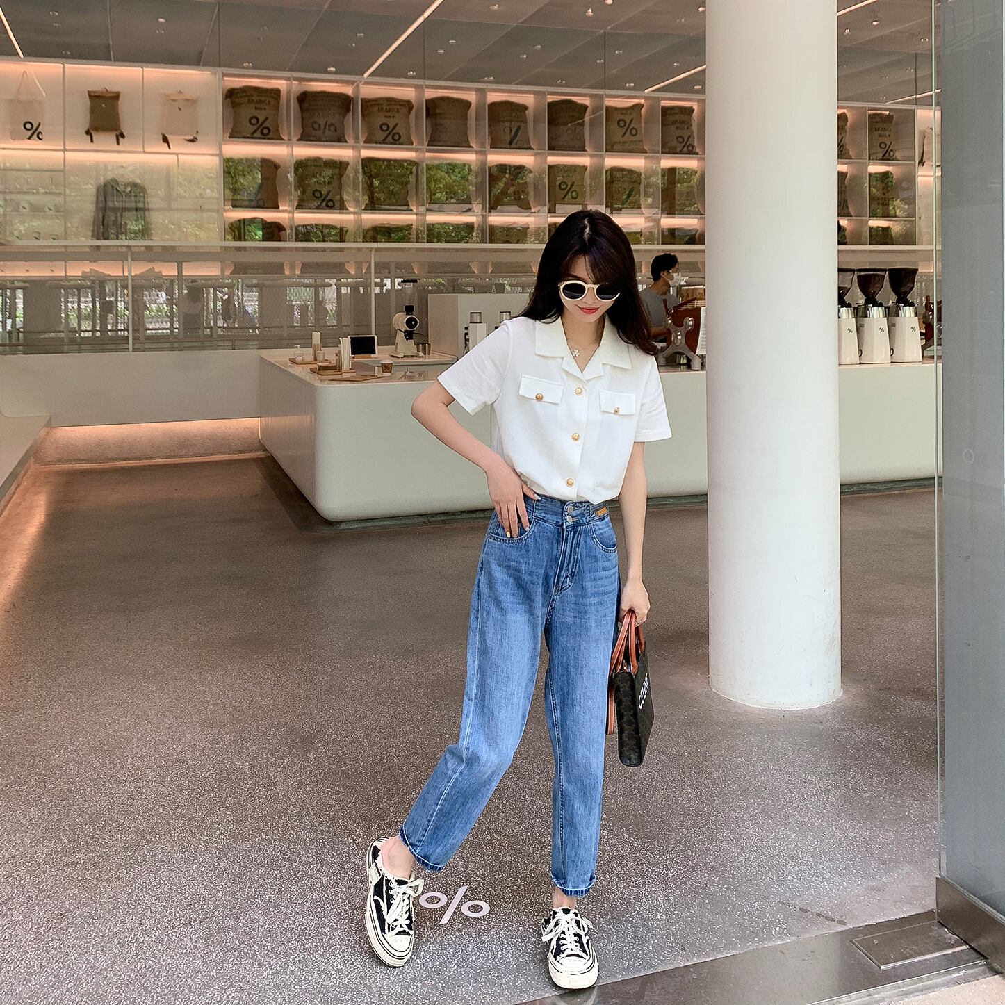 ボタンハイウェストウェストジーンズ 6Du_Shop_Women67100630490