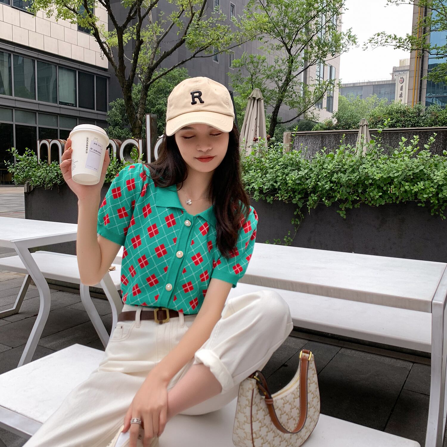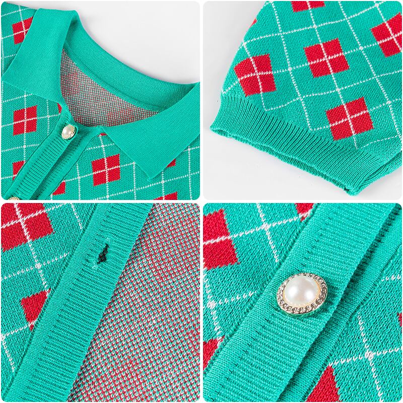 スタンダードグリーン格子柄ニットカラーシャツ レトロ 6Du_Shop_Women7217078413