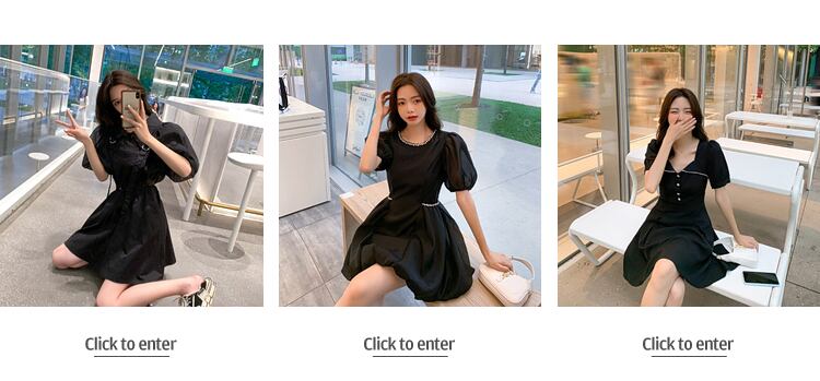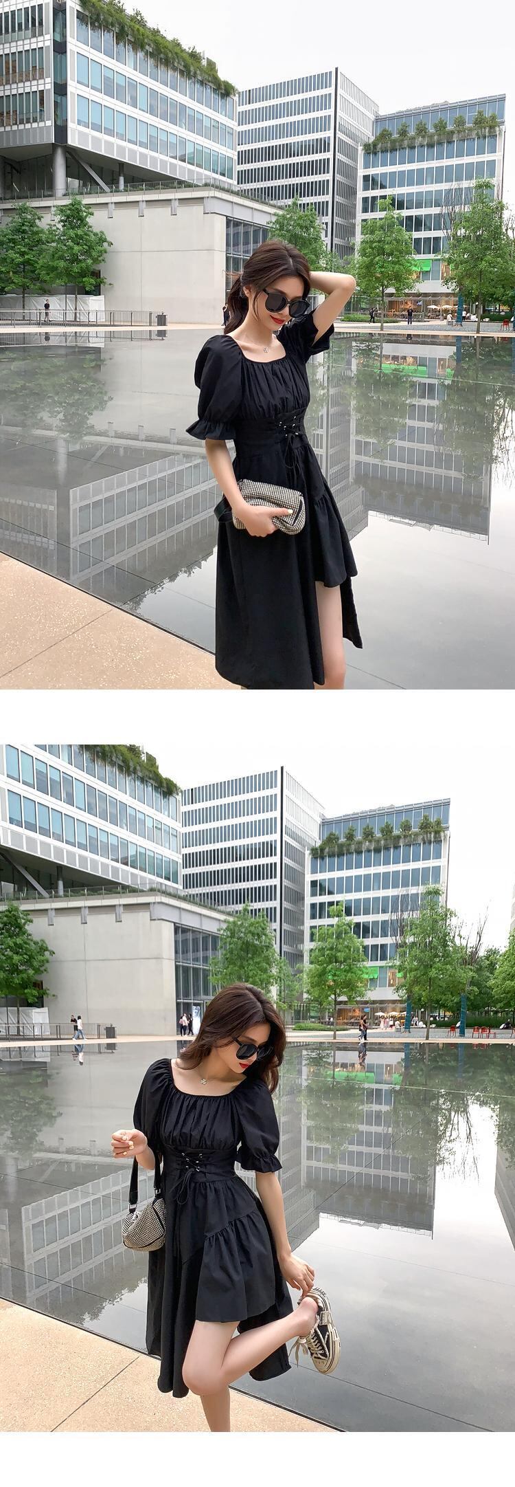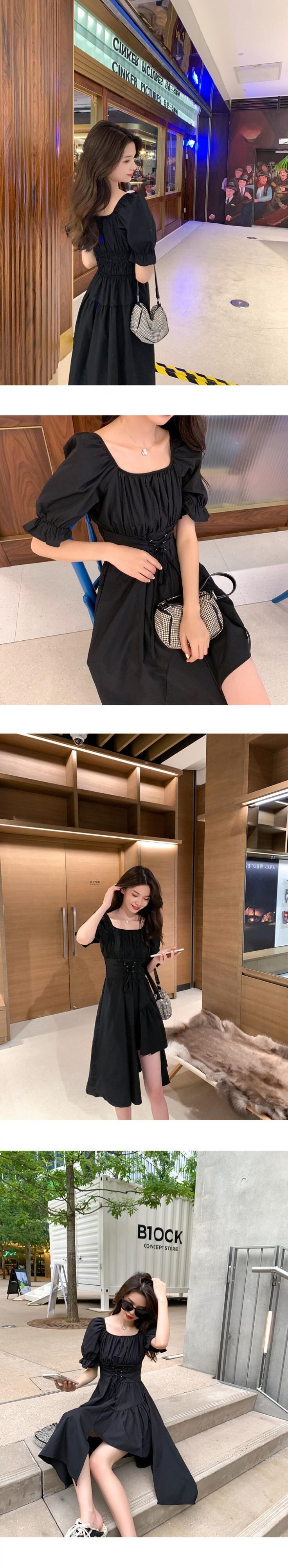 スタンダードドレス サマースタイルウェスト薄手Aラインブラック レトロ 夏物 スクウェア 6Du_Shop_Women73866431652