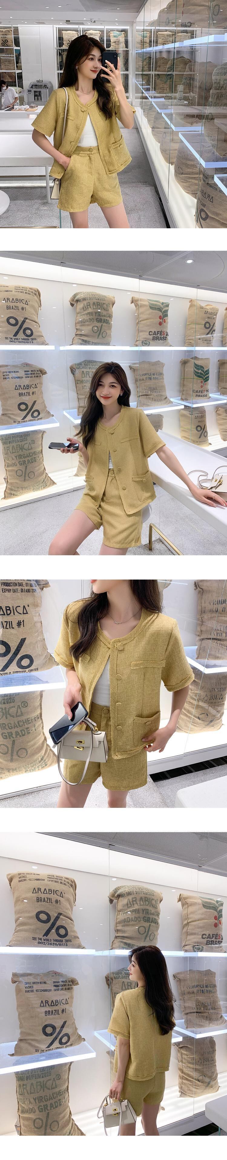 ラウンドネックショートコート ハイウェストウェストショーツ ブルマー Oネック 6Du_Shop_Women40525427672