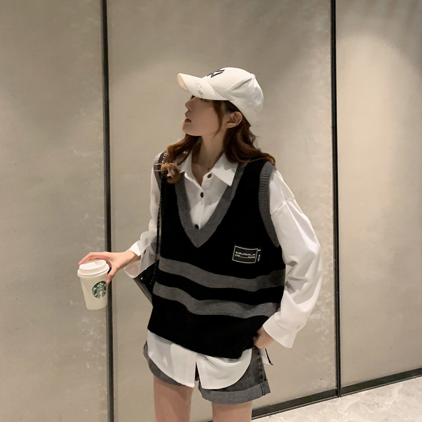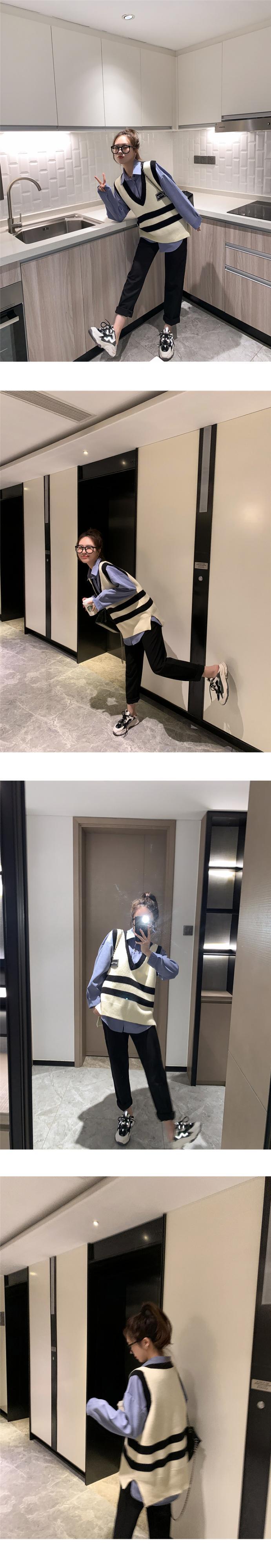 スプリングVネックストライプニットレッドセーター 春物 6Du_Shop_Women30564129114