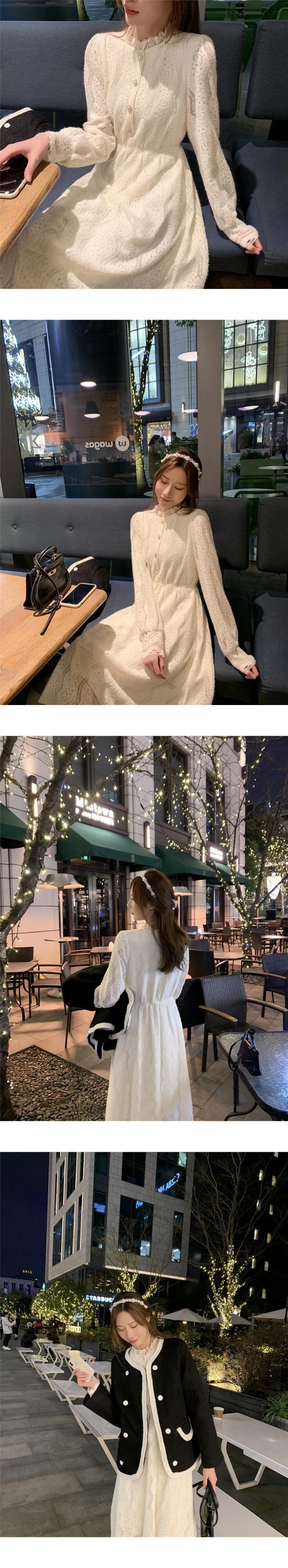 ウィンタースタンダードレースドレス ホワイトスカート レトロ 大人ガーリー スウィート キュート カジュアル 冬物 6Du_Shop_Women12705852723