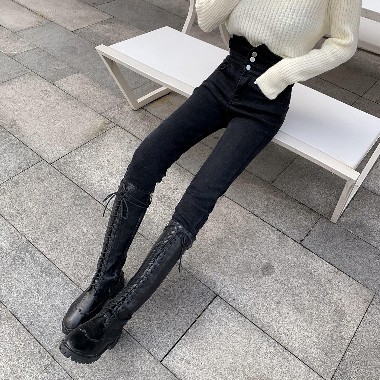 ウィンターハイウェストウェストベルベットジーンズ スリム薄手パンツ 冬物 6Du_Shop_Women86787351142