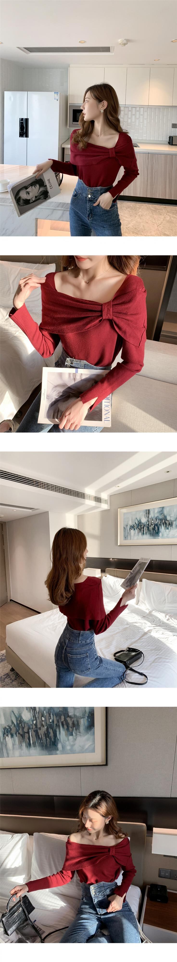 リボンレースセーター スプリングスタンダードレッドトップス レトロ 春物 6Du_Shop_Women96763001275
