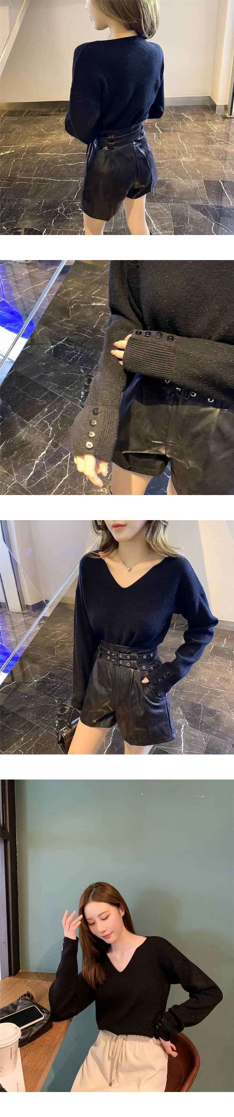 Vネックレッドセーター ウィンタースタンダードトップス レトロ 冬物 6Du_Shop_Women63122890494