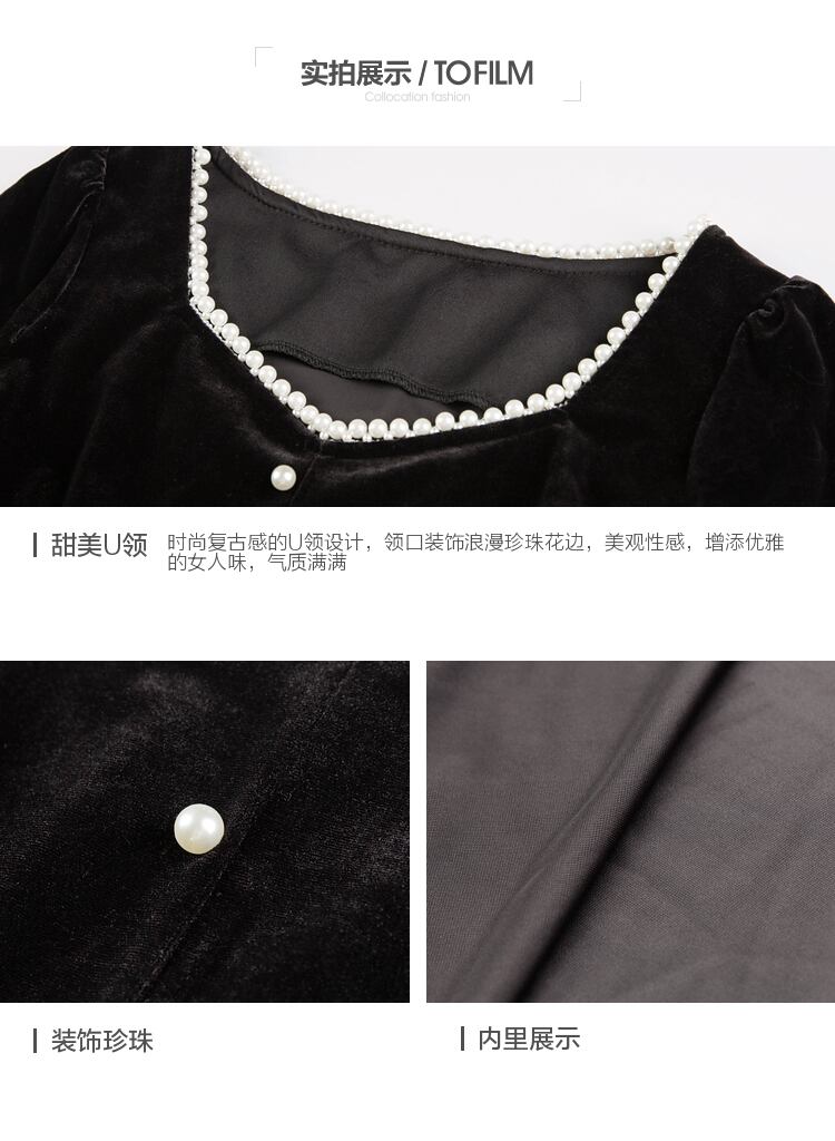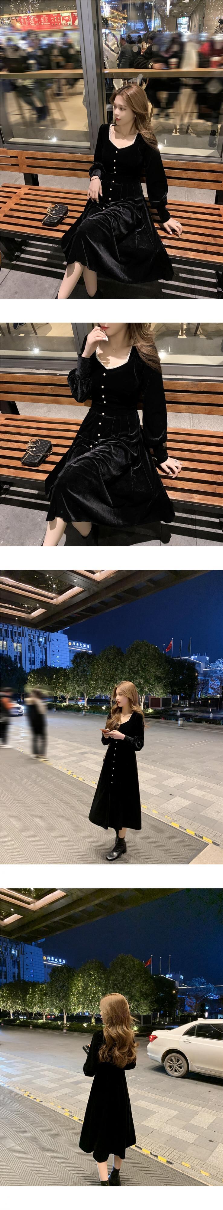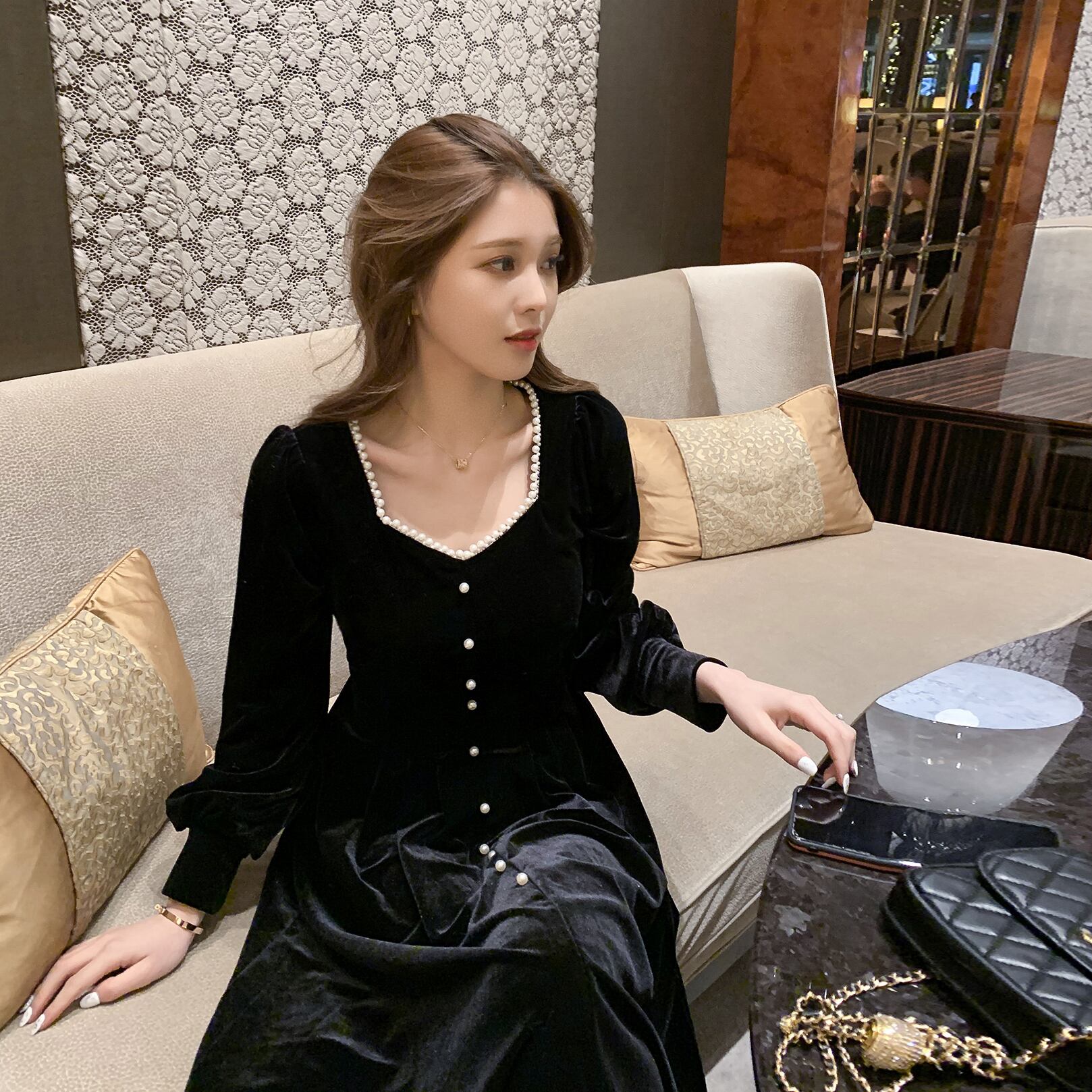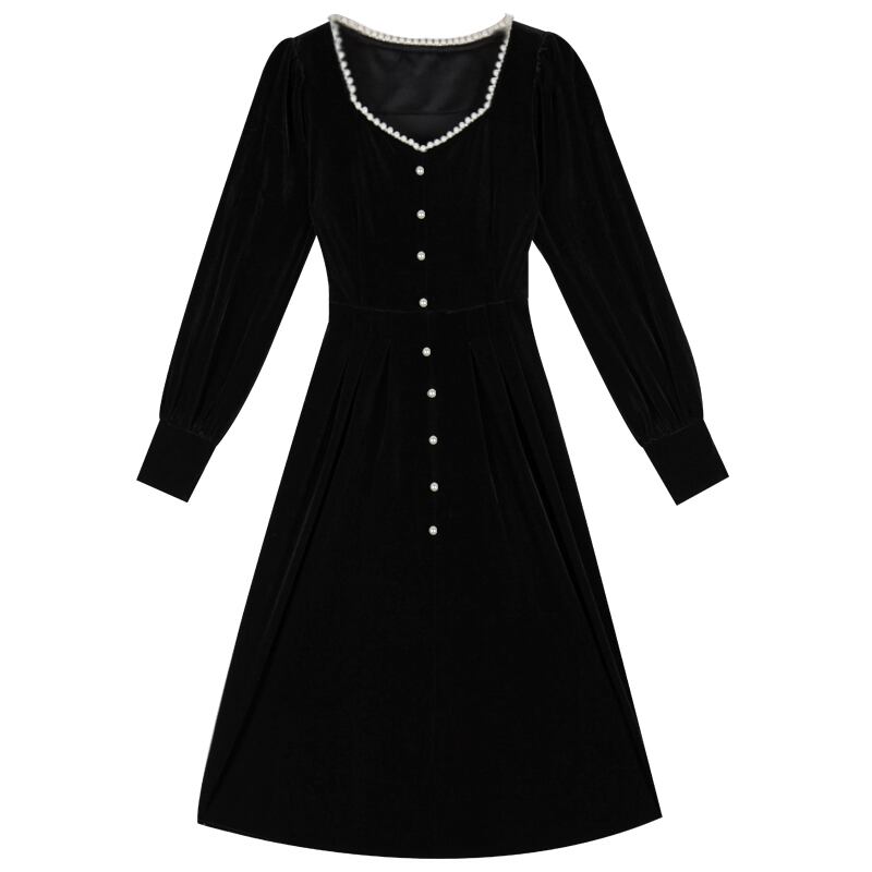スプリングスタンダードブラックベルベットドレス スカート ウェスト レトロ エレガント 春物 6Du_Shop_Women64836575552