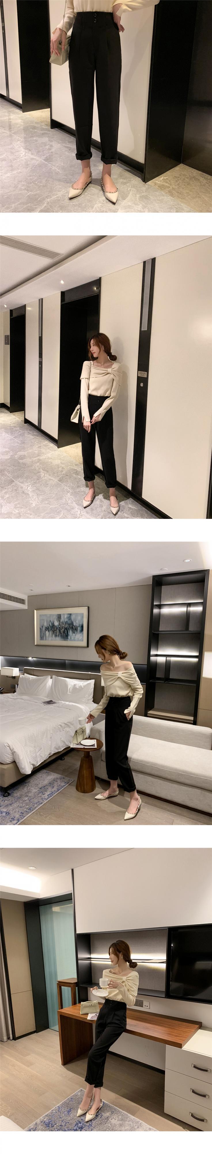 スプリングハイウェストスリム薄手グレーパンツ 春物 6Du_Shop_Women43391643038
