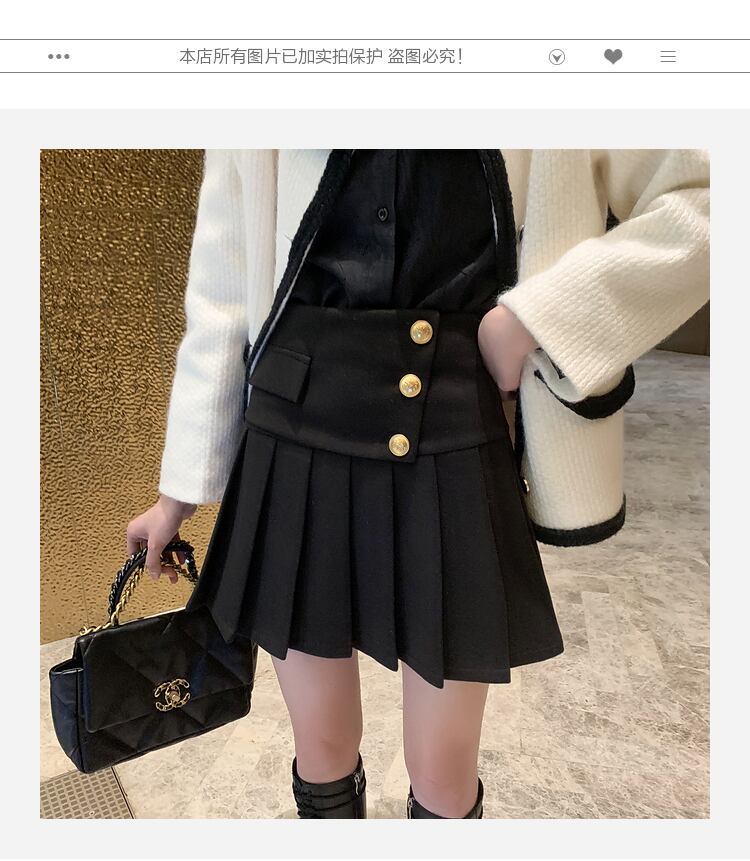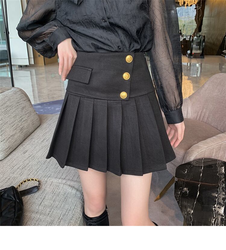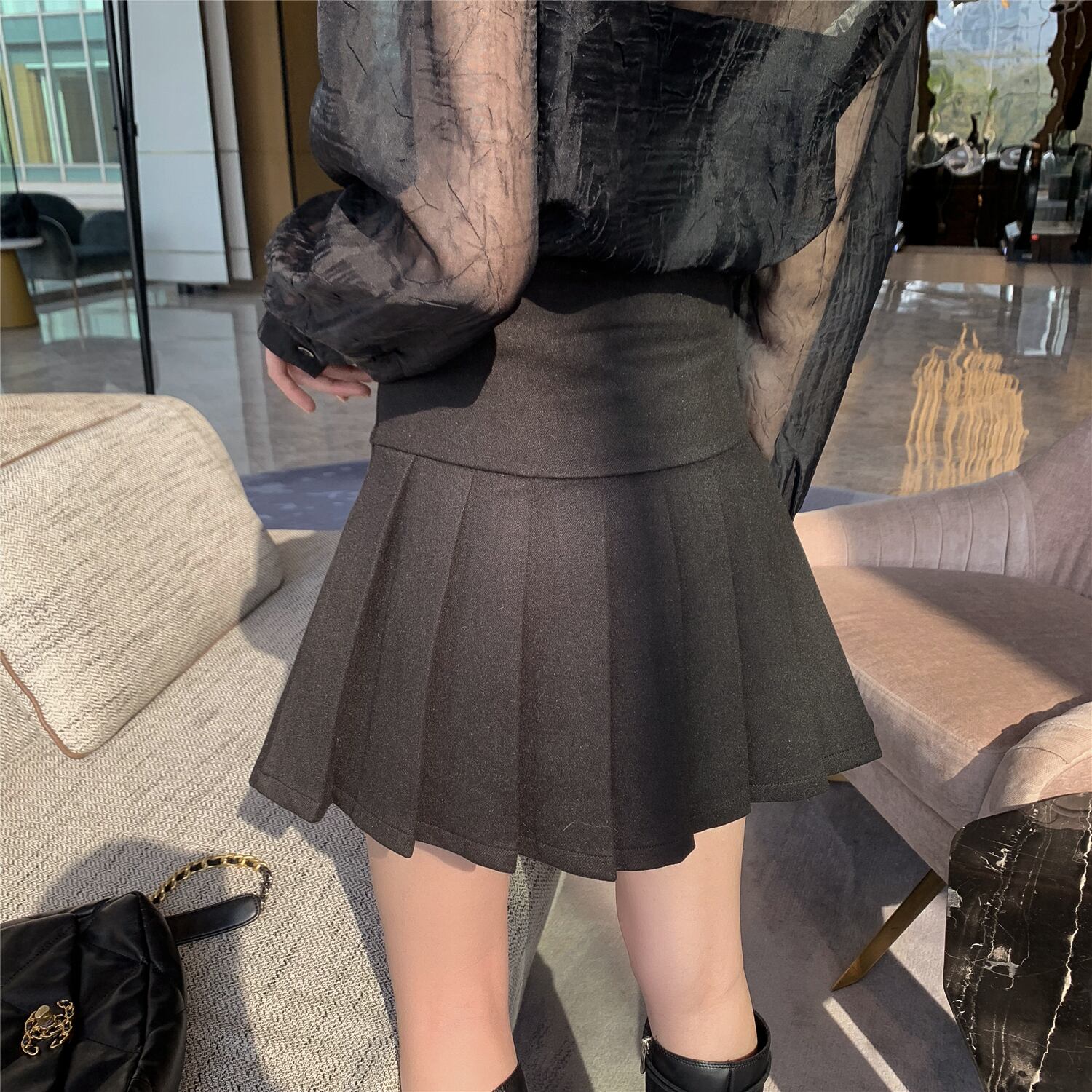 ウェストスリム薄手プリーツスカート スタンダードスタイルブラック レトロ 6Du_Shop_Women7668140049