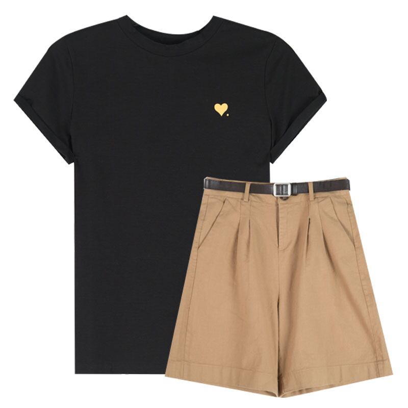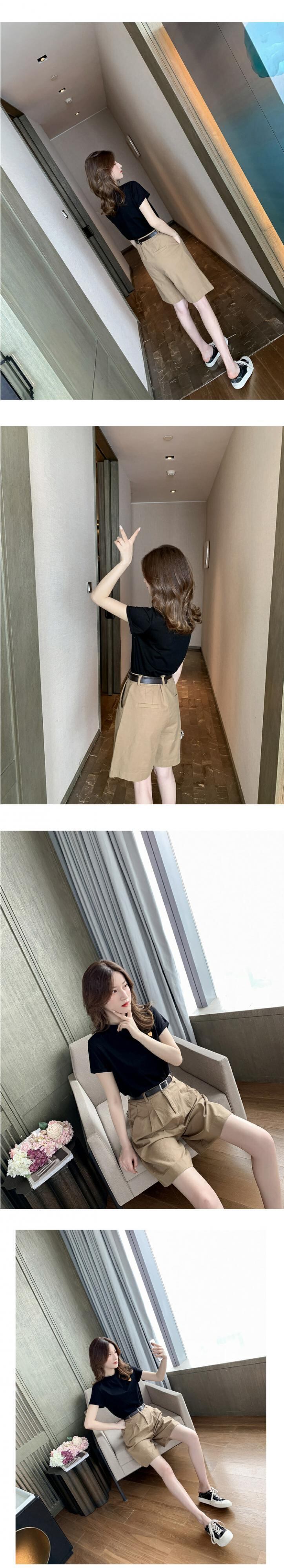 サマーブラックTシャツ カジュアルショーツ 薄手 レース 夏物 ブルマー レースアップ 6Du_Shop_Women95446777719