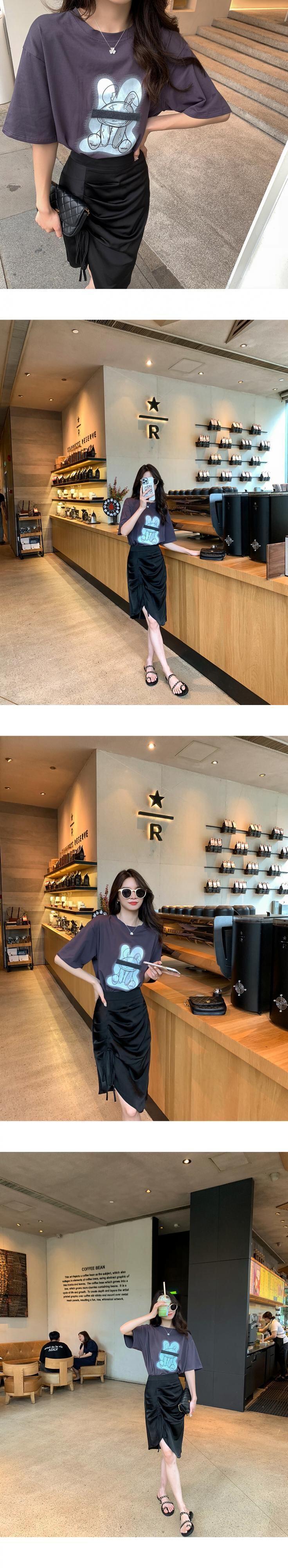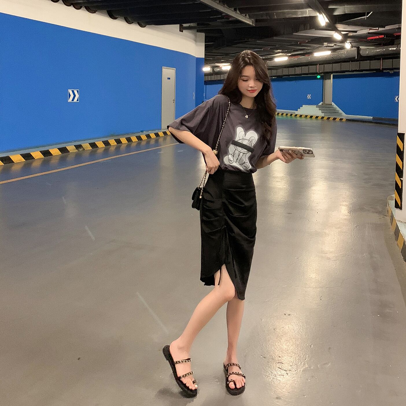 サマースタンダードTシャツ ハイウェストウェストスカート レトロ 夏物 6Du_Shop_Women5528490823
