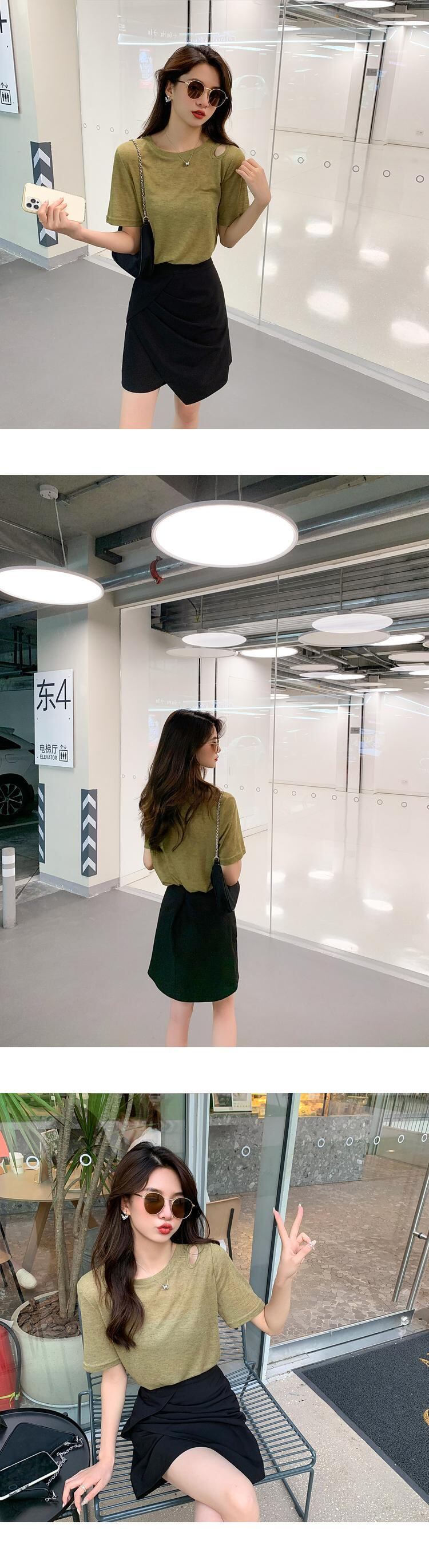 サマースタンダードスタイルハイウェストウェストスリムカジュアルスカート ブラックショート レトロ 夏物 6Du_Shop_Women70072922916