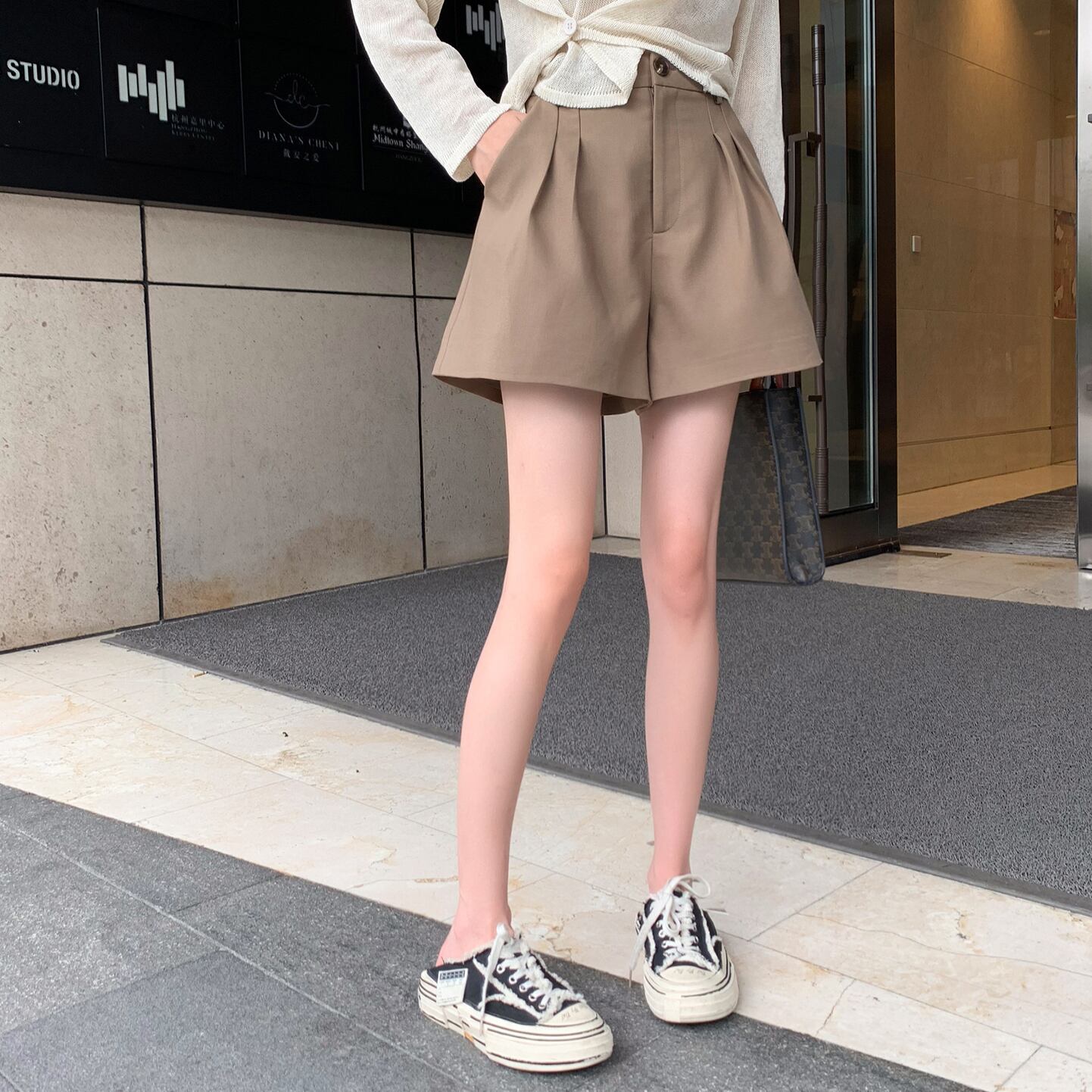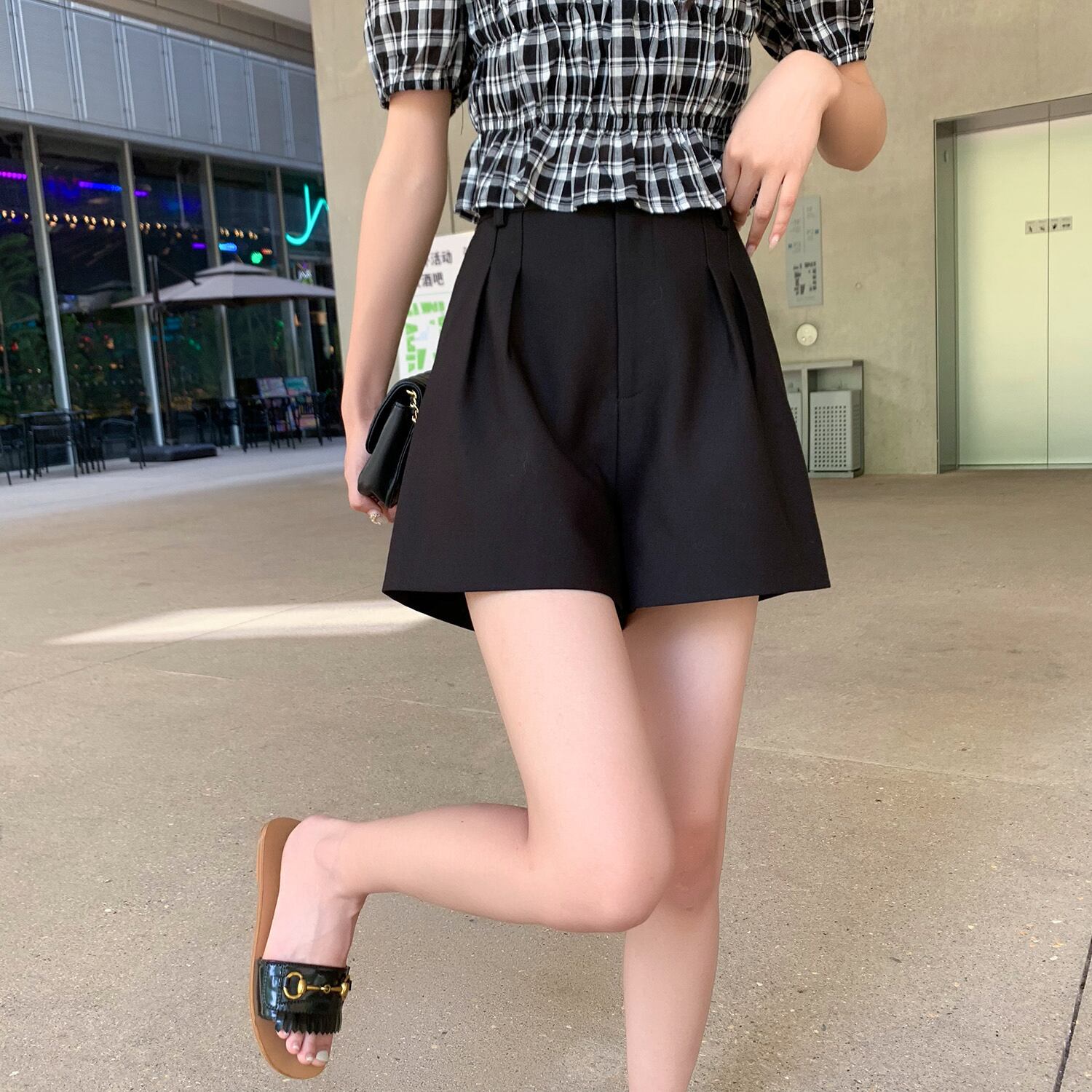 スタンダードスタイルハイウェストウェストカジュアルショーツ サマーブラックパンツ レトロ 夏物 ブルマー 6Du_Shop_Women34786591239