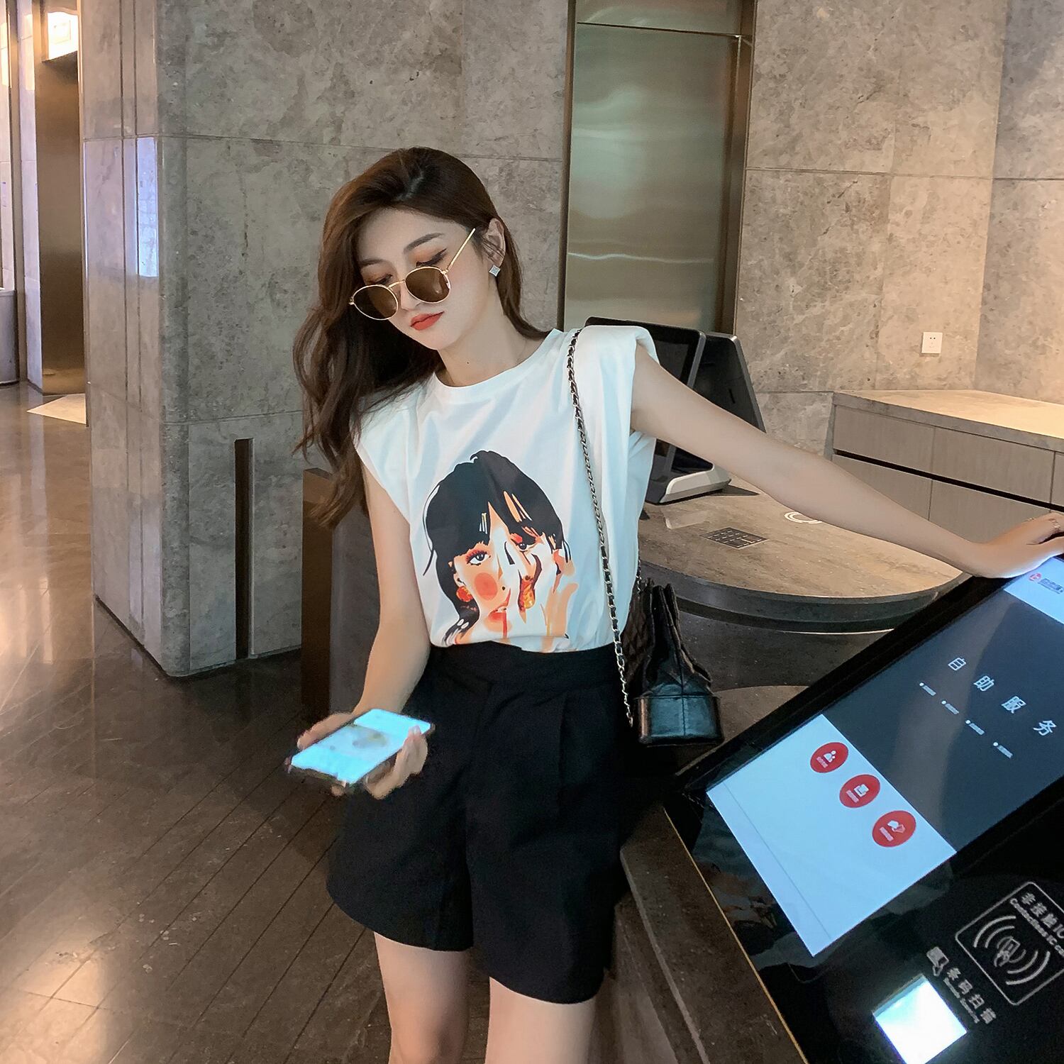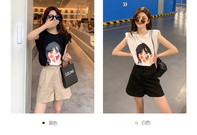 プリント柄ノースリーブTシャツ サマールーズブラックレッドトップス 夏物 6Du_Shop_Women86877465368