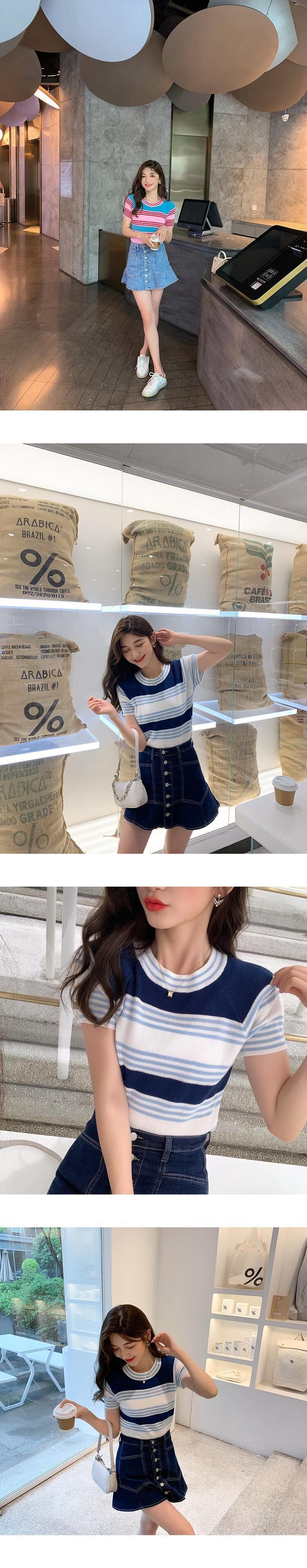 サマースタイルラウンドネック薄手ニットセーター レディースハイウェストウェストショートシャツ トップス 大人ガーリー スウィート キュート カジュアル 夏物 Oネック 6Du_Shop_Women22326739104