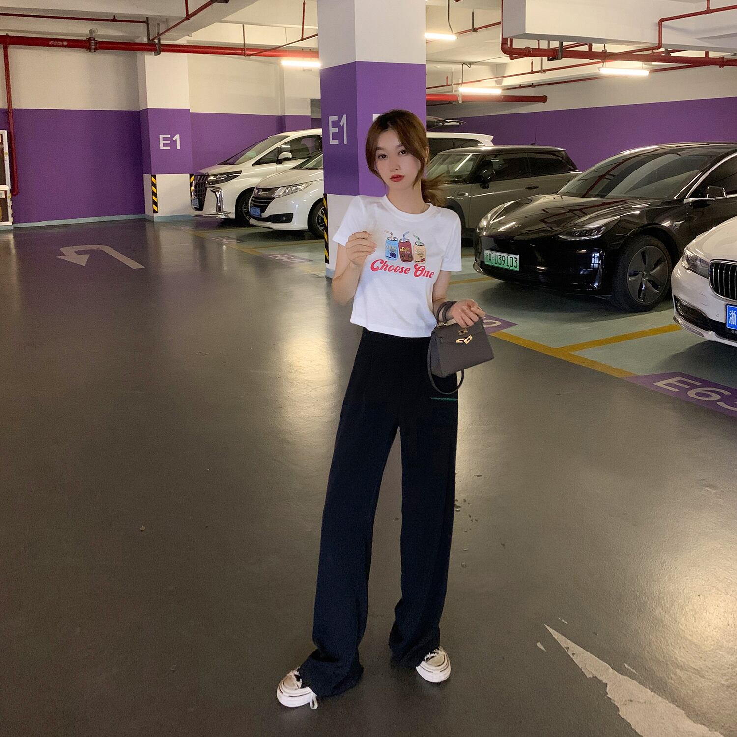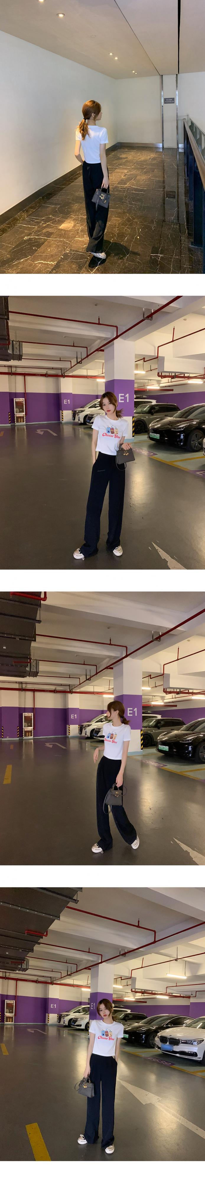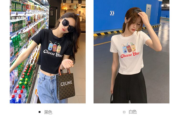 ショートウェストスリムTシャツ レディースサマースタンダードスタイルブラックレッドトップス レトロ 夏物 6Du_Shop_Women25328496917