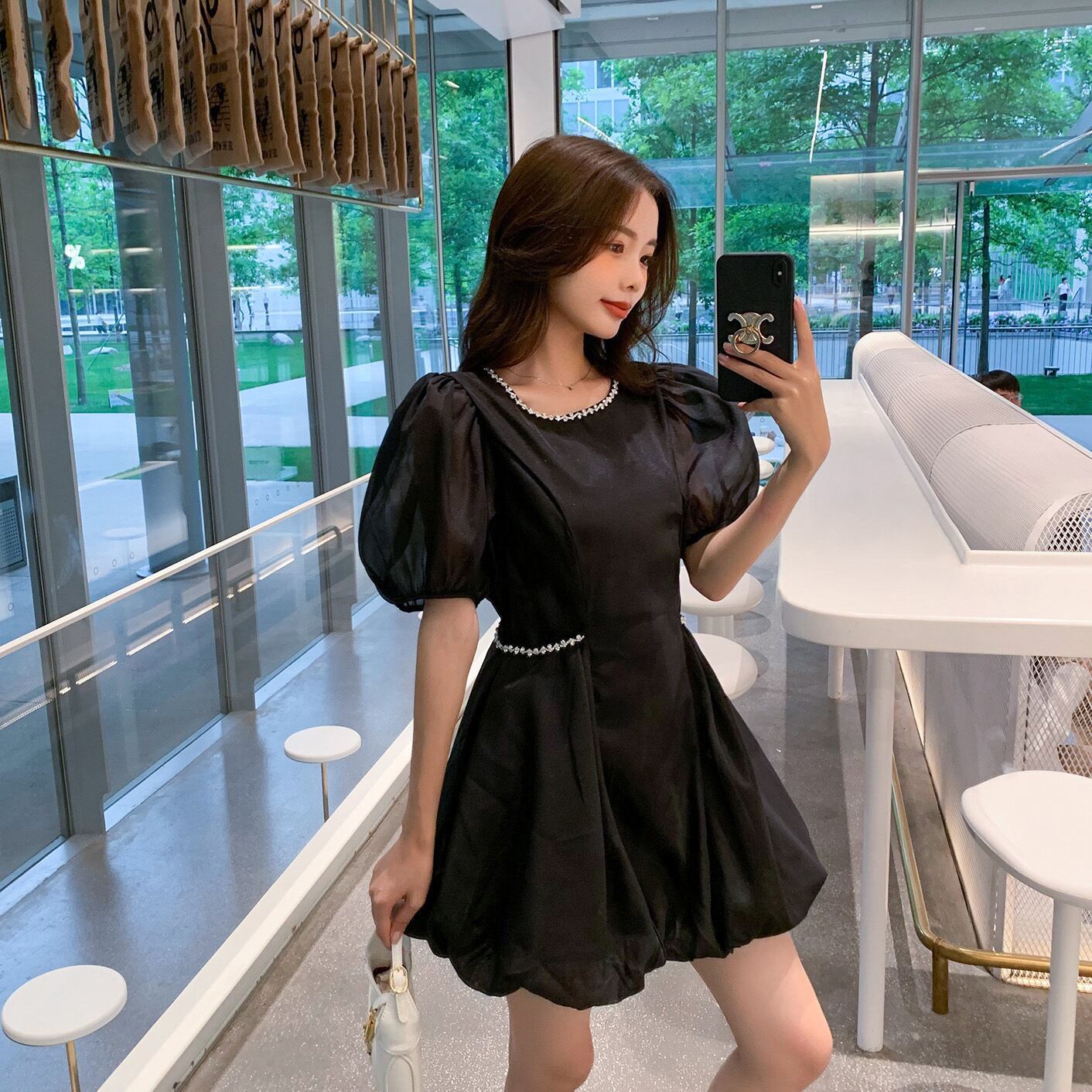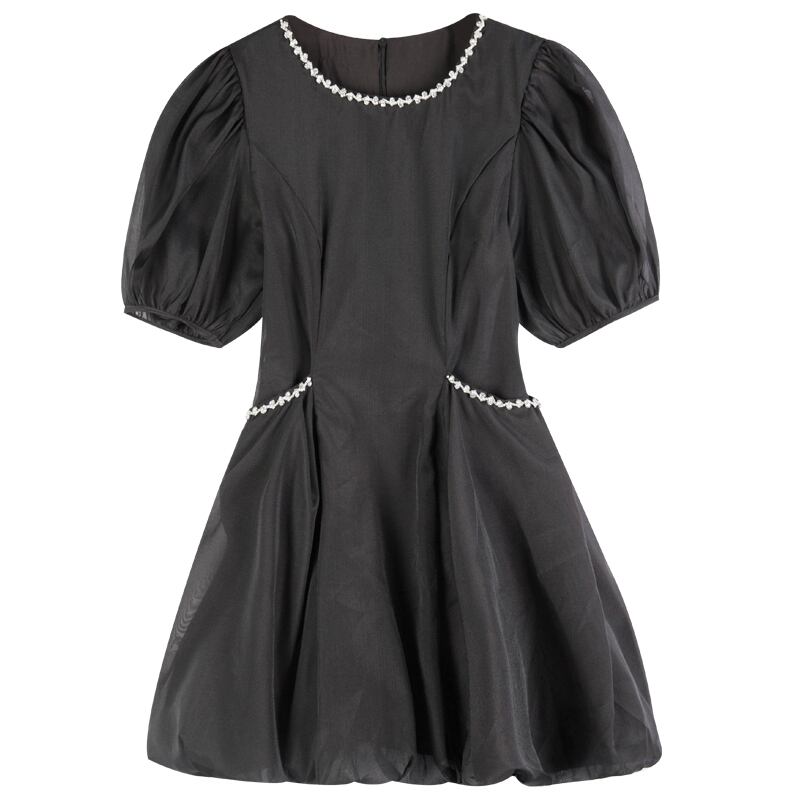 ブラックスタンダードウェストスタイルドレス サマー薄手Aライン レトロ 夏物 6Du_Shop_Women10282939215