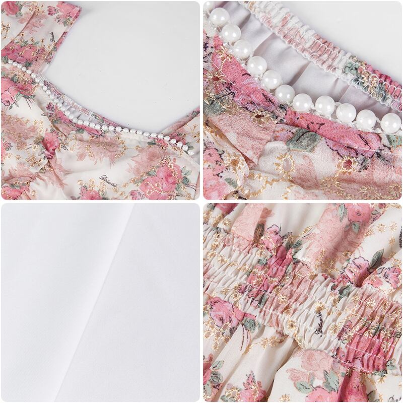 フローラルドレス サマースタイルウェスト薄手Aラインスカート 大人ガーリー スウィート キュート カジュアル 夏物 花柄 6Du_Shop_Women38913106850