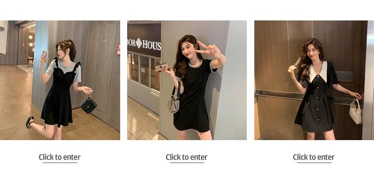 Vネックスタイルドレス サマースタンダードブラック薄手Aラインスカート レトロ 夏物 6Du_Shop_Women45253469852