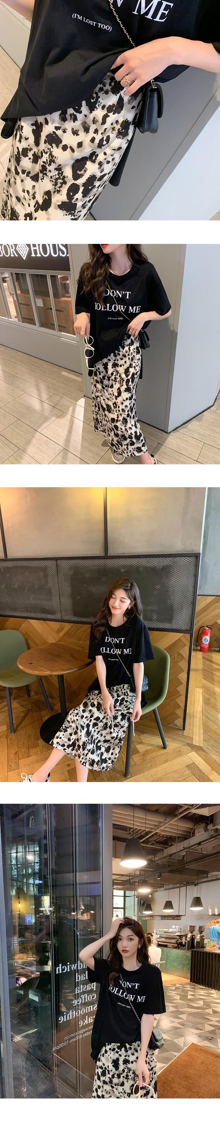 スタンダードルーズスタイルTシャツ サマーレオパードスカート レトロ 夏物 6Du_Shop_Women96985970996