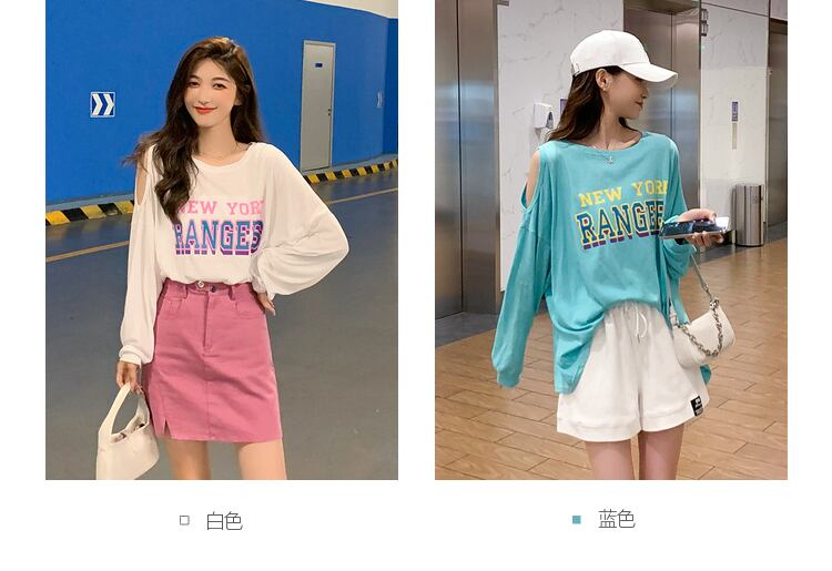 プリント柄Tシャツ レディースサマースタイルホワイトトップス ロング 夏物 オフショルダー 6Du_Shop_Women92913178037
