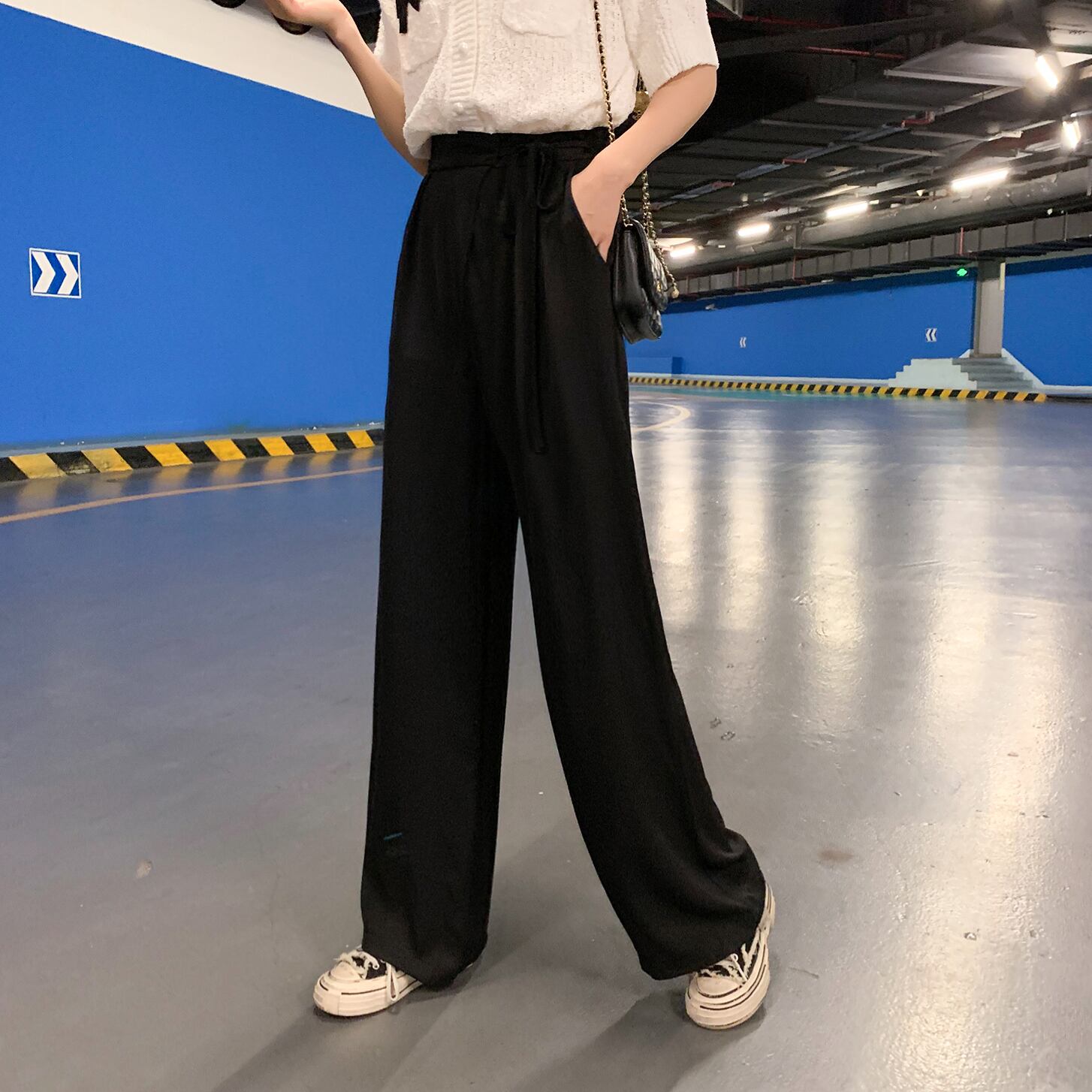 サマースタイルハイウェストウェストカジュアルパンツ ルーズホワイト 夏物 6Du_Shop_Women69786587784