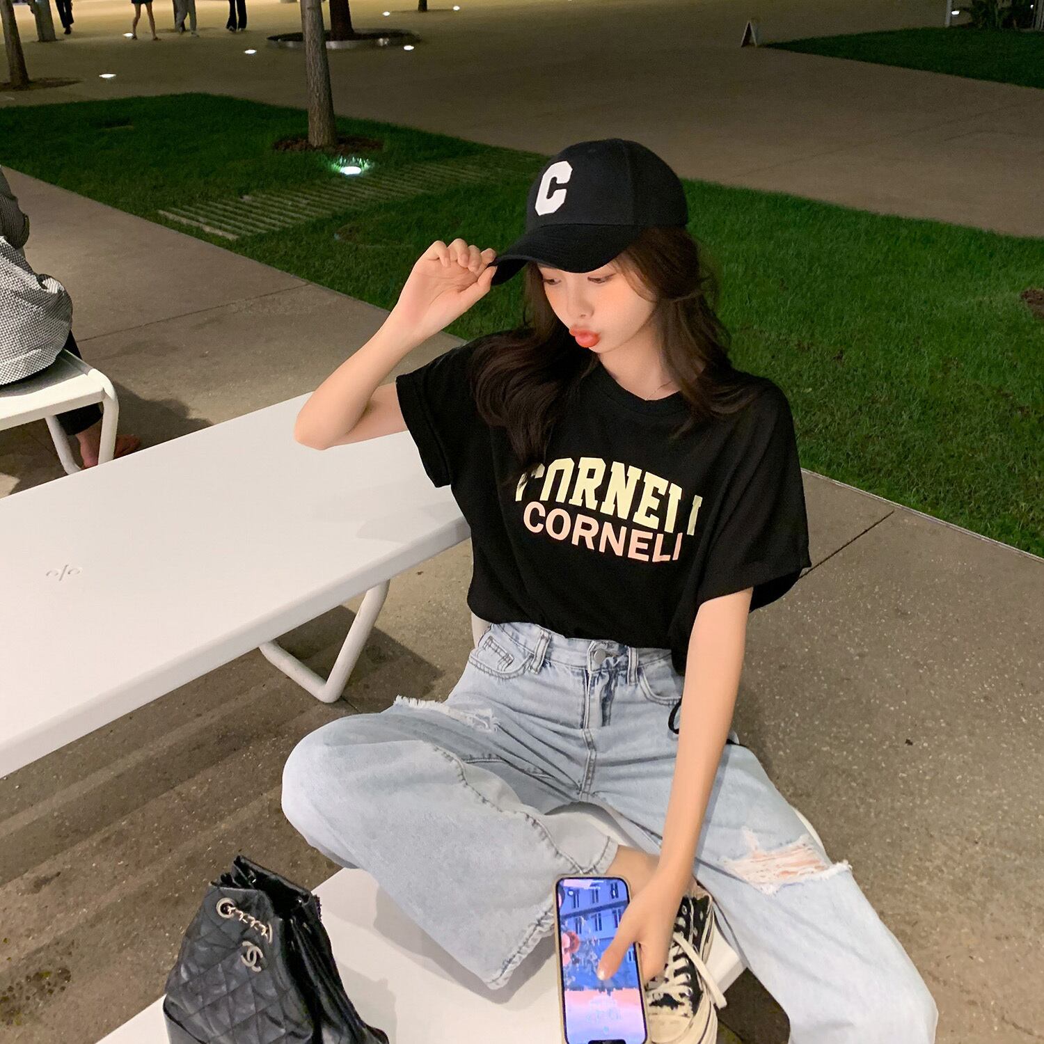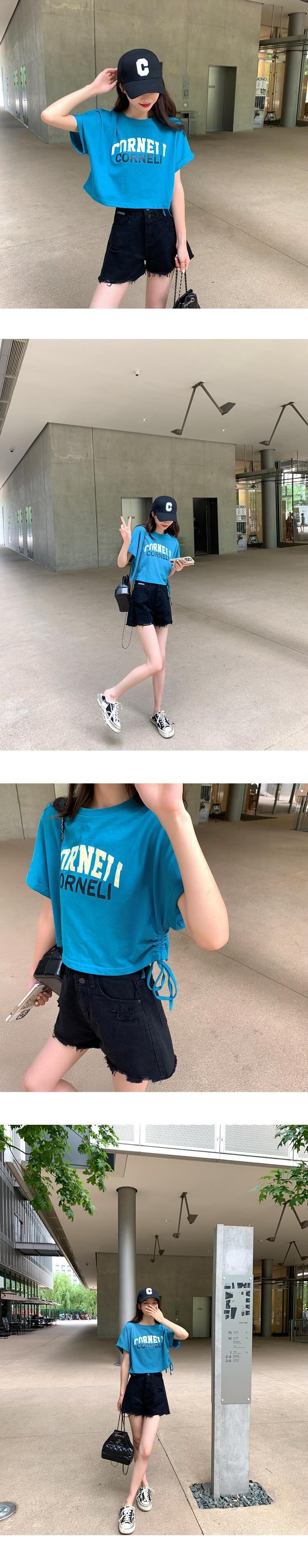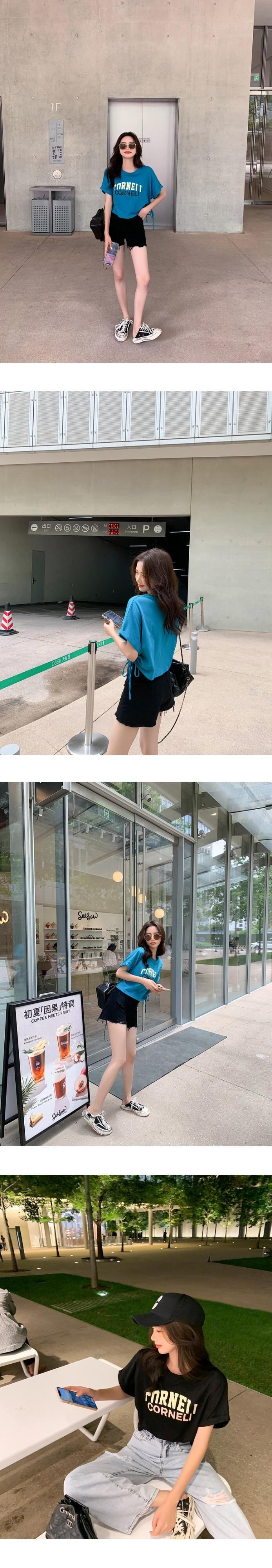 ウェストショートTシャツ サマープリントレッドトップス 夏物 6Du_Shop_Women17424912206