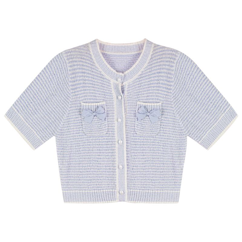 ブルー薄手Vネックカーディガンサマースタイルシャツ トップス 夏物 6Du_Shop_Women7070668044