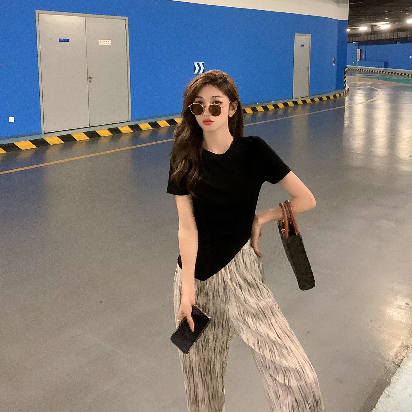 スタンダードスタイルTシャツ サマーカジュアルハイウェストパンツ トップス レトロ 夏物 6Du_Shop_Women89427370677