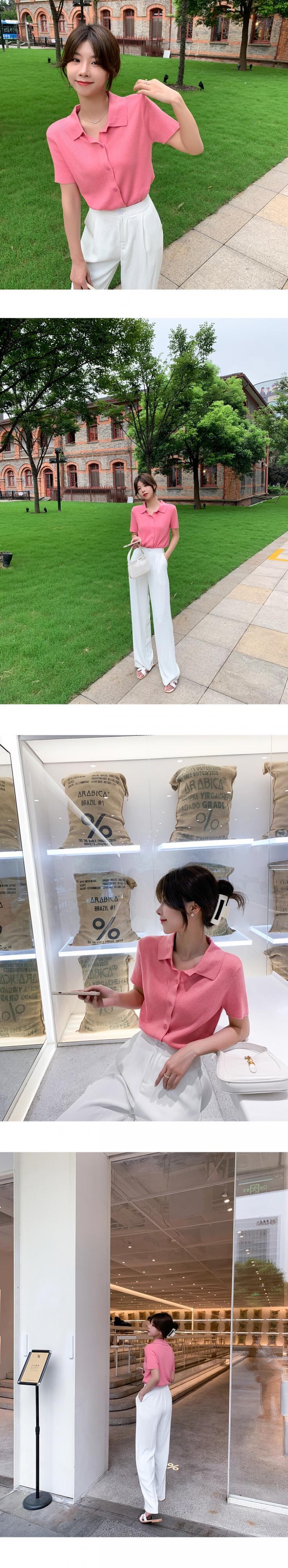 サマースタイルカラー薄手ニットカーディガンカジュアルTシャツ トップス ピンク 夏物 6Du_Shop_Women20473842313