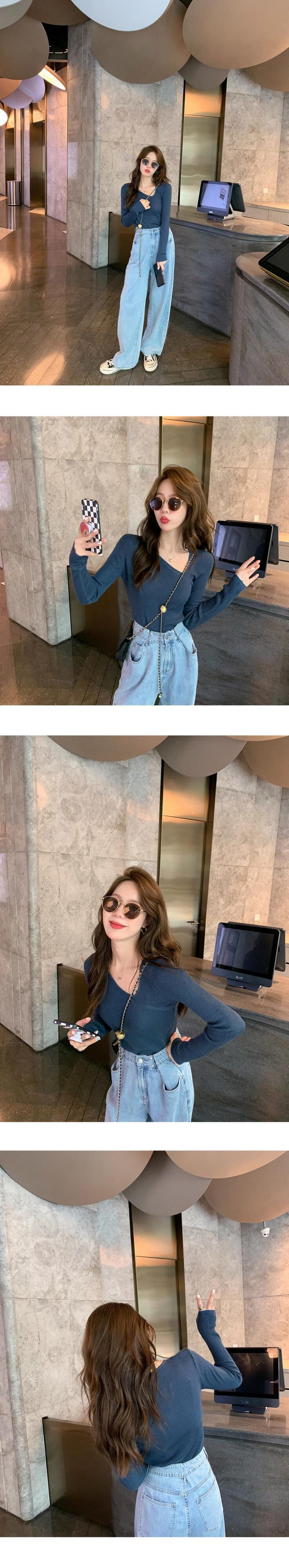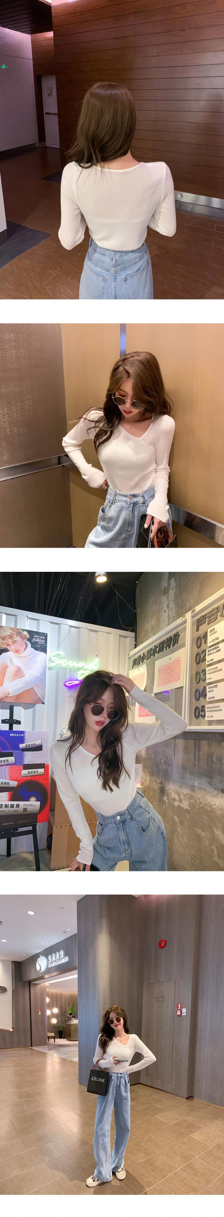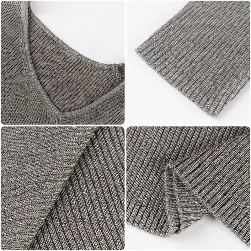 薄手セーター オータムVネックトップス ロング 秋物 6Du_Shop_Women99339774847