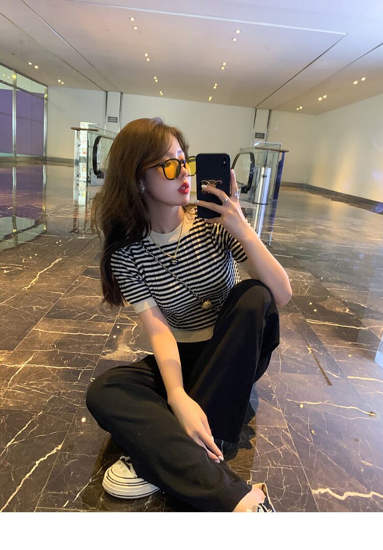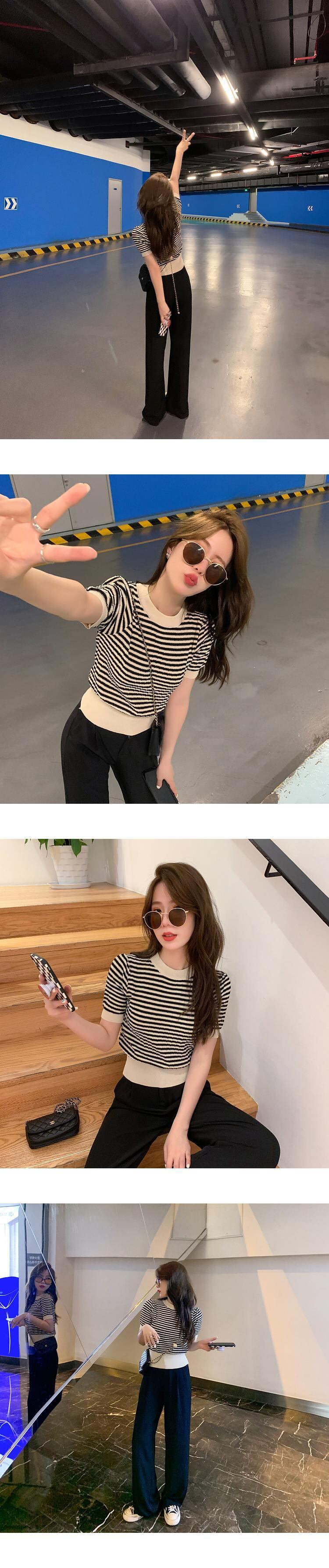 サマーショートストライプセーター ウェストトップス 夏物 6Du_Shop_Women76009019722