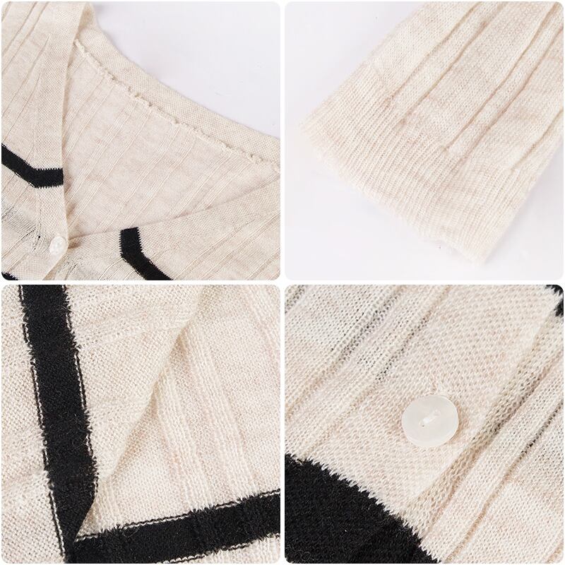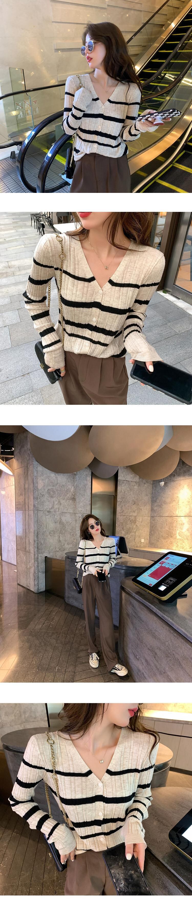 Vネックニットセーター トップス オータムスタイルストライプカーディガン ロング 秋物 6Du_Shop_Women25964677430