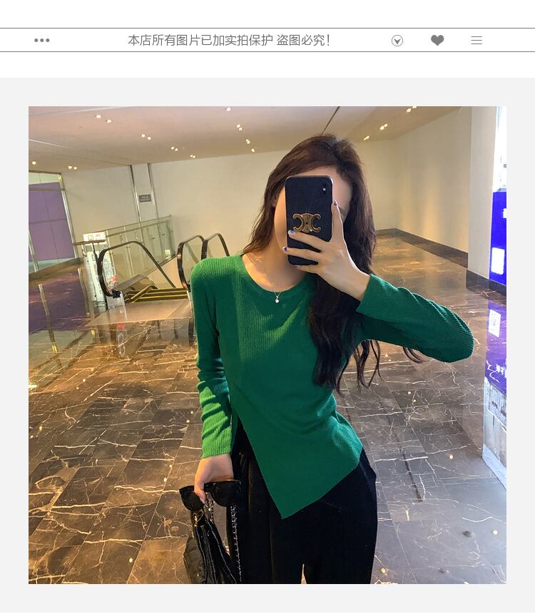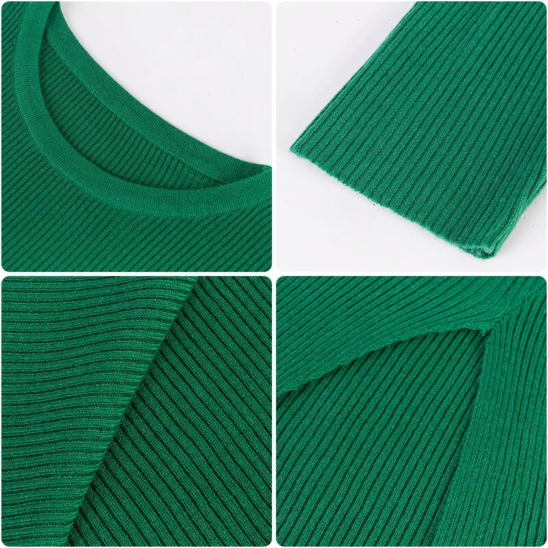 オータムセーター グリーンスリムトップス ロング 秋物 6Du_Shop_Women91517566865