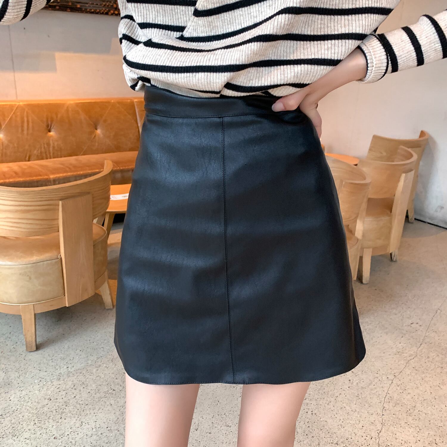 オータムスタンダードスタイルハイウェストウェストレザースカート スリムAライン レトロ 秋物 6Du_Shop_Women94846086277